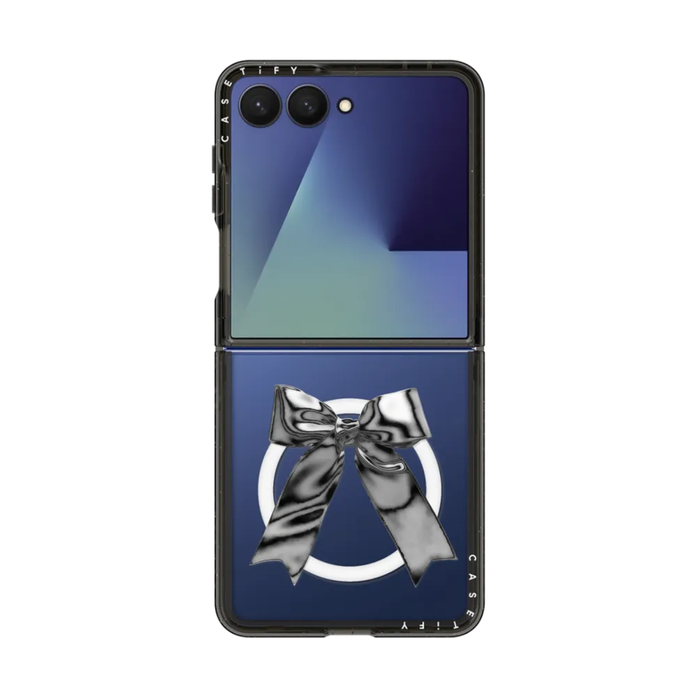 CASETiFY Magsafe Impact Case for Z Flip 7 - Metallic Ribbon Clear Black