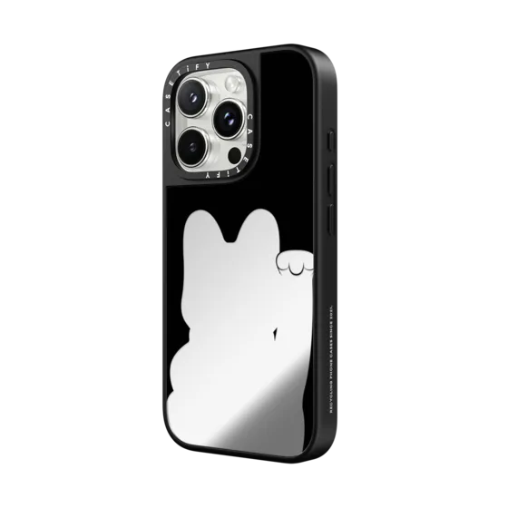 CASETiFY Magsafe Mirror Case for iPhone 16 Pro Max / 16 Pro / 15 Pro Max - Lucky Cat Outline Silver on Black