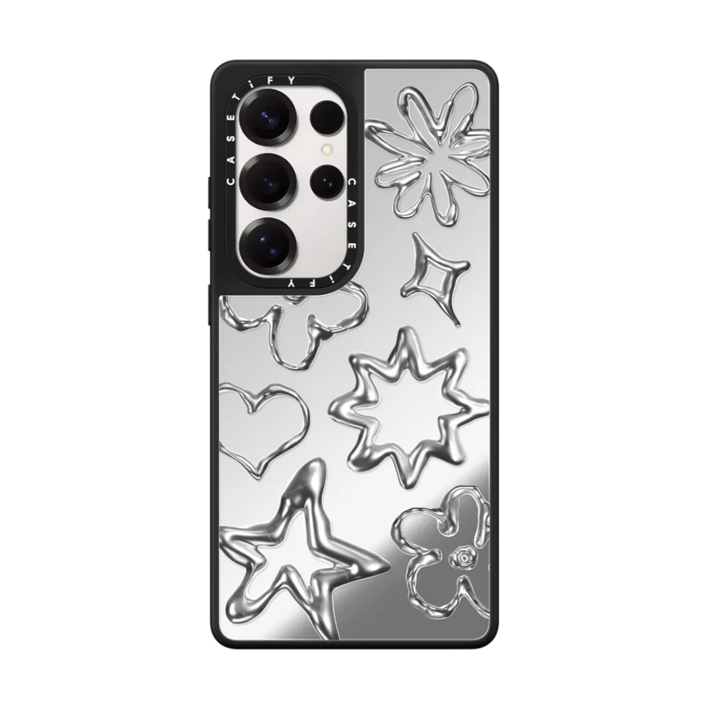 CASETiFY Magsafe Mirror Case for S25 Ultra - Chrome Doodles Silver On Black
